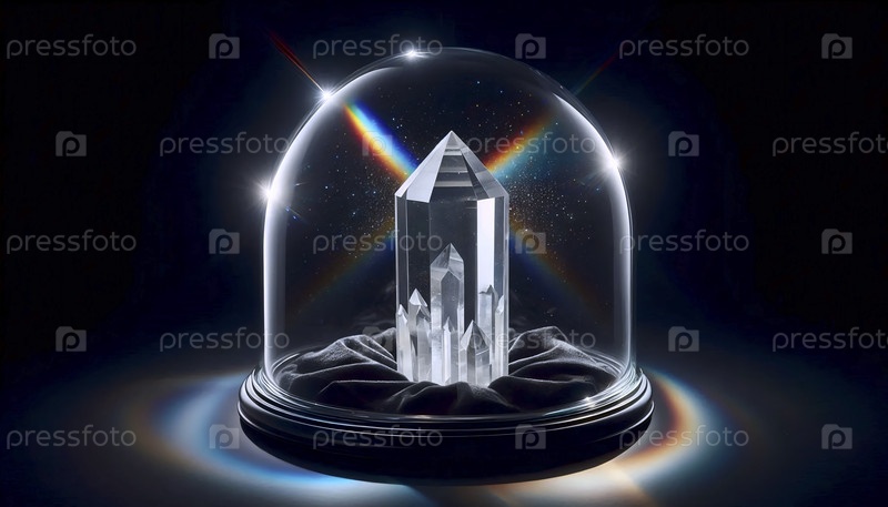 Прозрачный, резко фасетированный макет кристаллических точек на черном бархатном стекле в стеклянной колодце Ai создал изображение