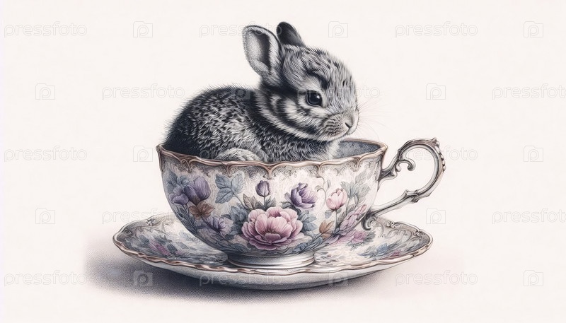 кролик-карлик в чайной чашке чернила рисунок