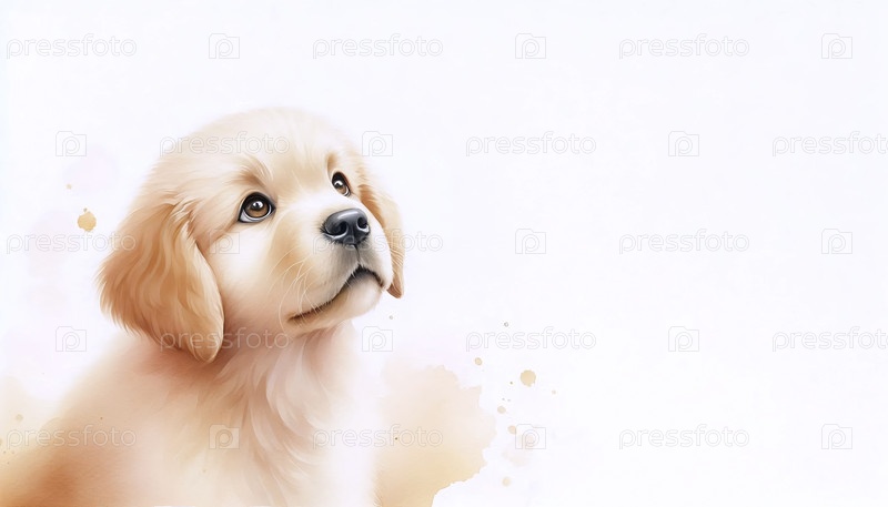 Pretty Puppy акварельный художественный печат, Ai generated image