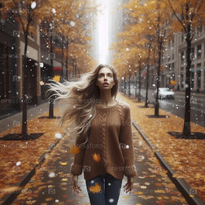 Женщина, попавшая в личный снегопад, Ai generated image