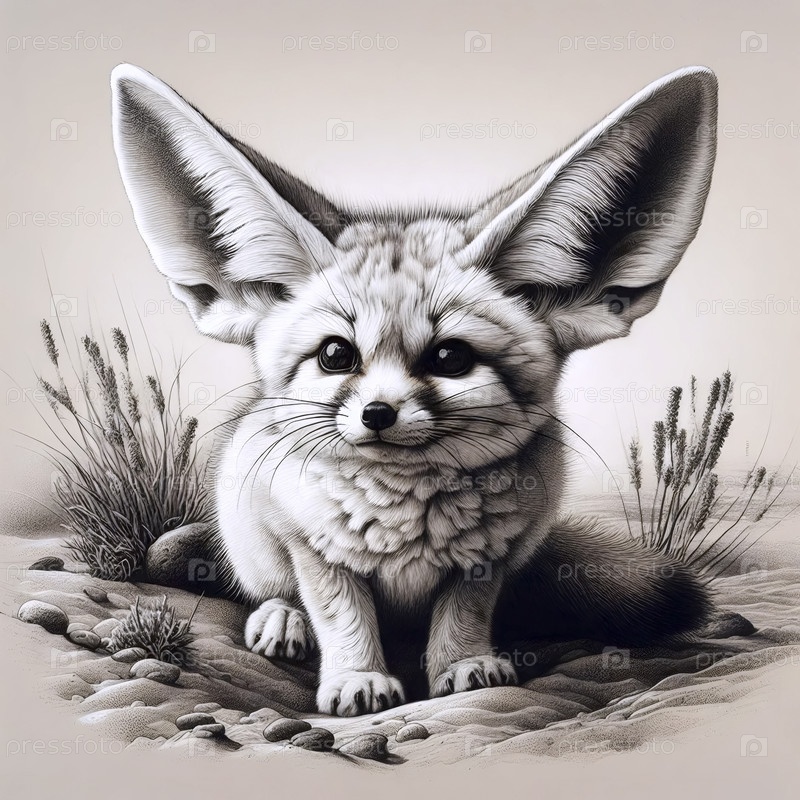A tiny fennec fox ink drawing art print, Ai generated image Маленький фенек лисистый чернила рисование художественная печать, Ай создал изображение