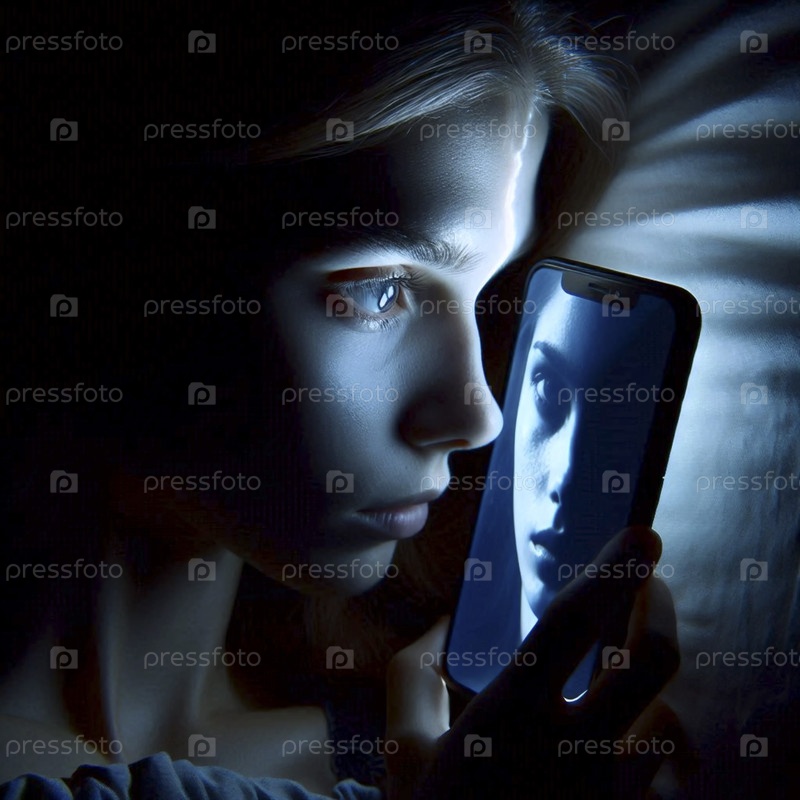 Лицо, полуосвещенное светом смартфона, Ай создал изображение