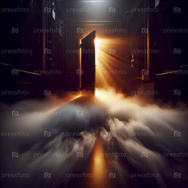 Сухой ледяной дым ползет под дверью раздевалки, Ai generated image