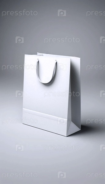 Пустой, плоский бумажный макет торговой сумки с вырезанными ручками, изолированный на сером фоне, Ai generated image