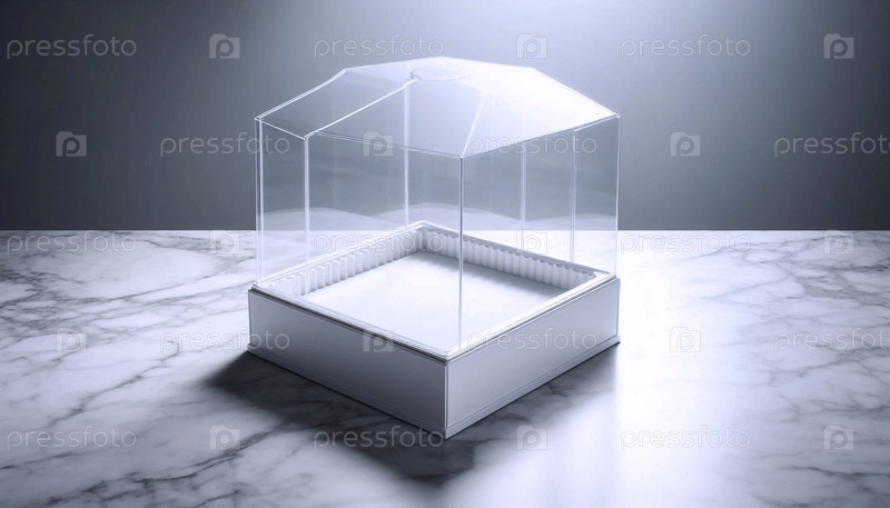 Шестиугольный макет тортовой коробки с прозрачным окном из ацетата, пустой и закрытым