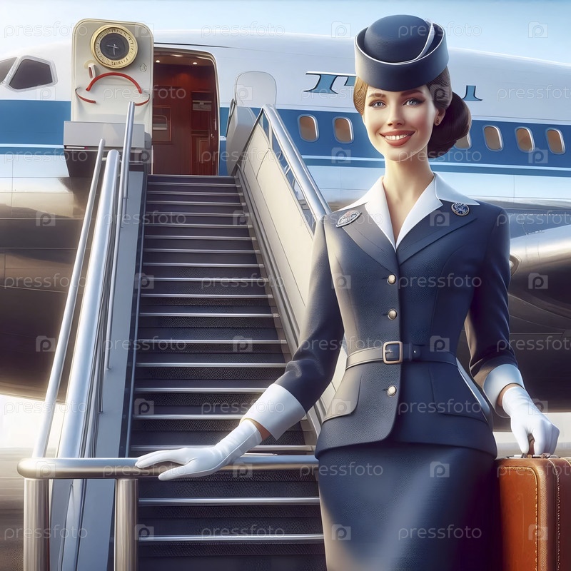 Стюардесса 1960-х годов на ступеньках самолета, Ай создала образ