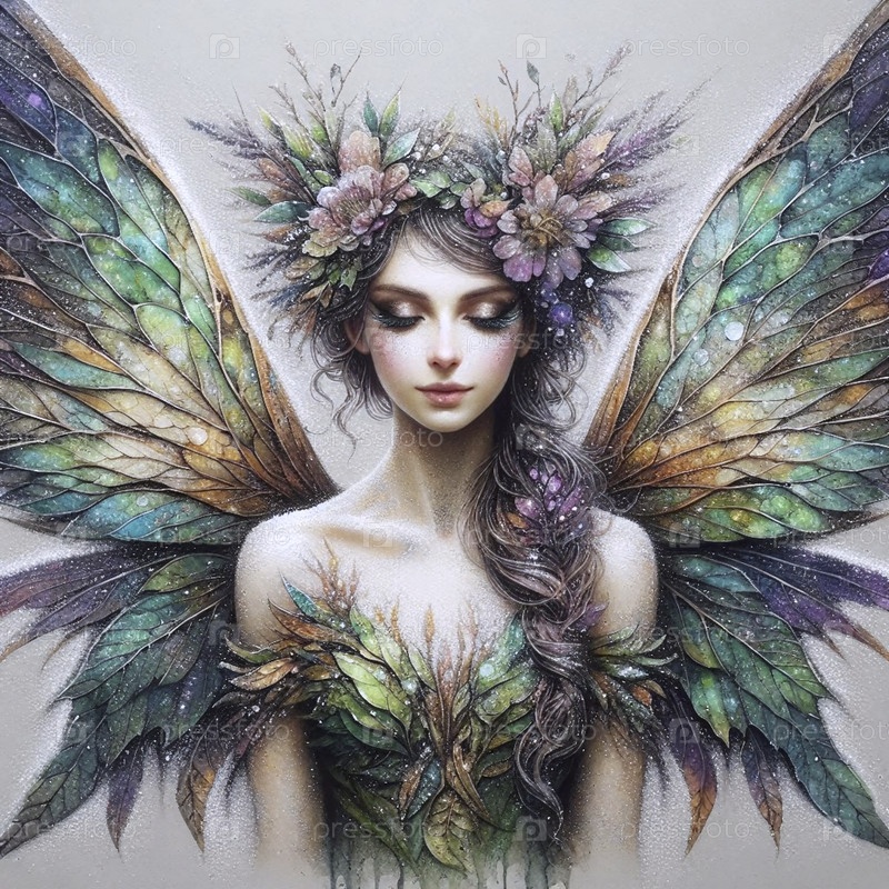 Фея с крыльями акварели солевой техники, Ai generated image
