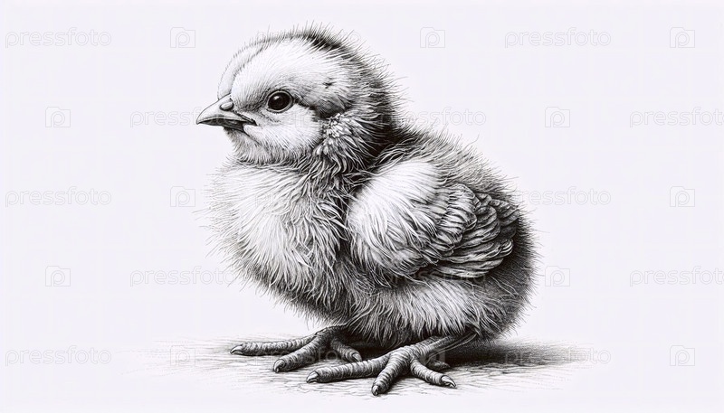Chick ink drawing art print, Ай создал изображение А
