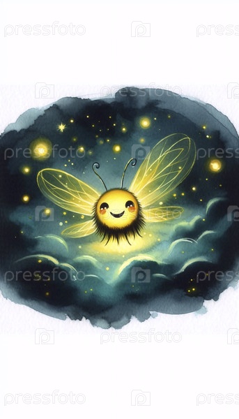 Sparkling Firefly Акварельная художественная печать, Ai generated image