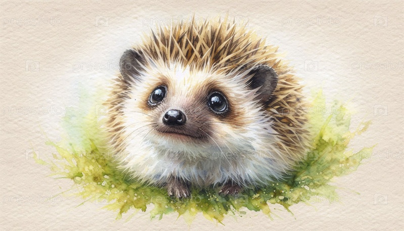 Cute Hedgehog акварельный художественный печат, Ai generated image