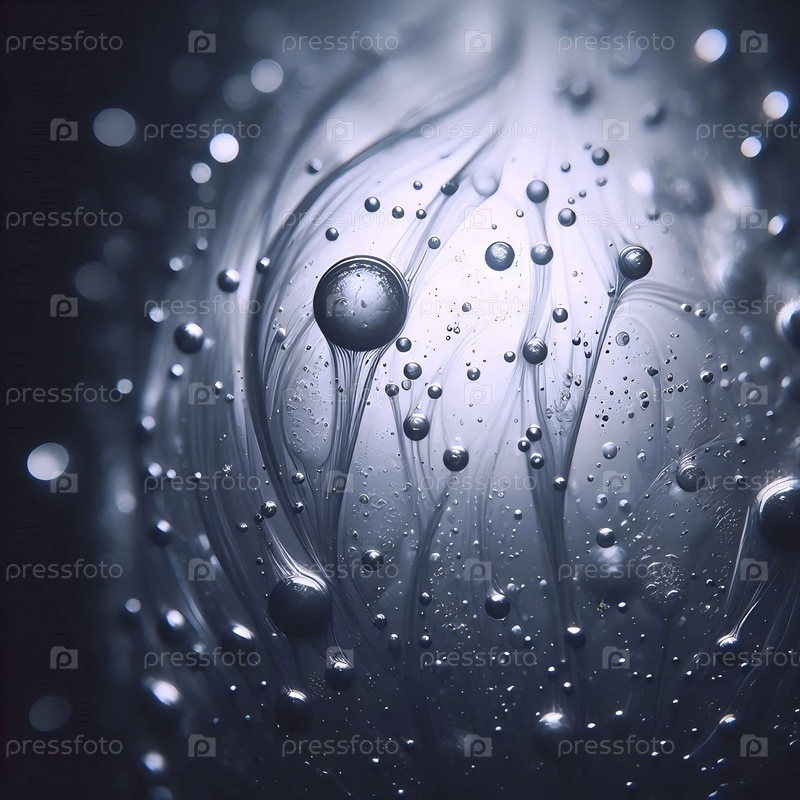 Макромокап несовершенного, вручную продуваемого стекла, показывающий захваченные пузырьки воздуха и вращающиеся органические формы с обратным освещением