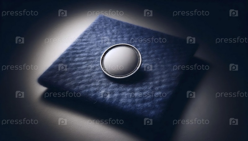 Круглый эмалированный макет булавки с обычной металлической границей, размещенная на шерстяной подушке, Ai generated image