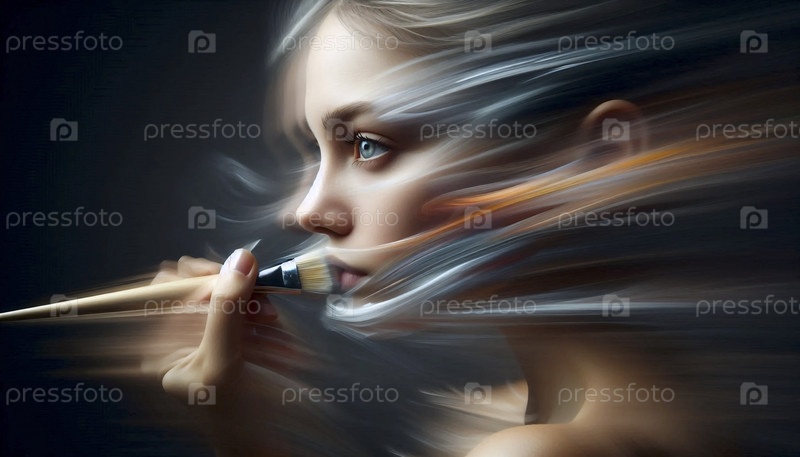 Фотография с длинной экспозицией, захватывающий поток кисти художника, Ai generated image