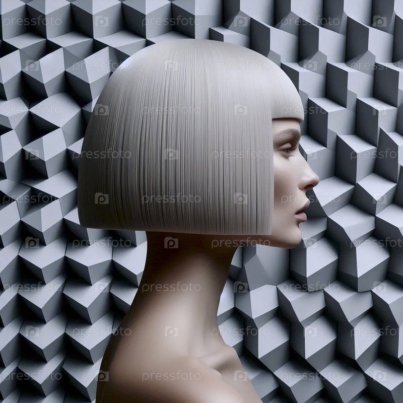 Геометрическая стрижка боба против геометрической стены, Ai generated image