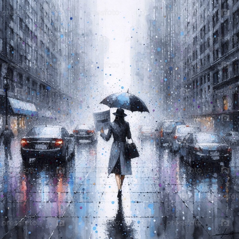 Женщина в акварели с точки дождя, Ai generated image