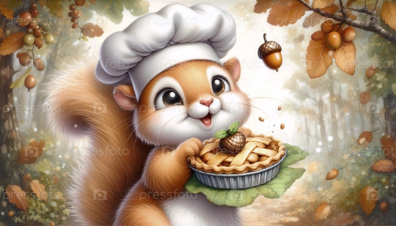 Березовая белка печать желудочный пирог акварельный арт-принт, Ai generated image