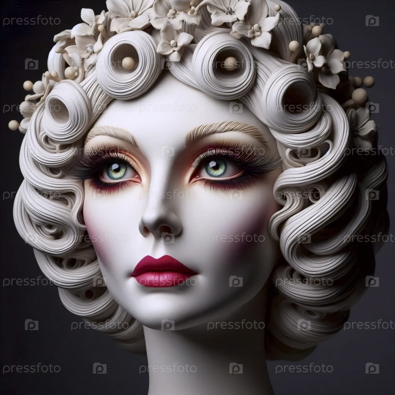 Макияж, нанесенный на голову гипсового парика, Ai generated image