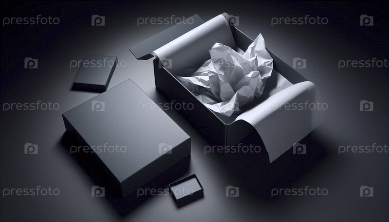 Матовый макет подписной коробки, открытый и пустой, с тканевой бумагой, Ai generated image