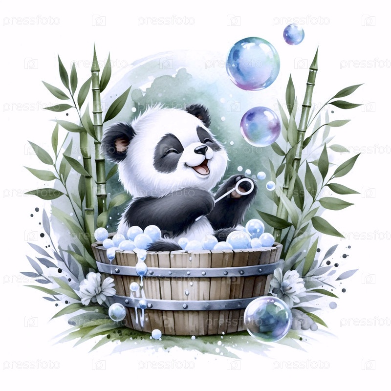 Панда в бамбуковом лесу Ванна акварельный арт-принт, Ai generated image