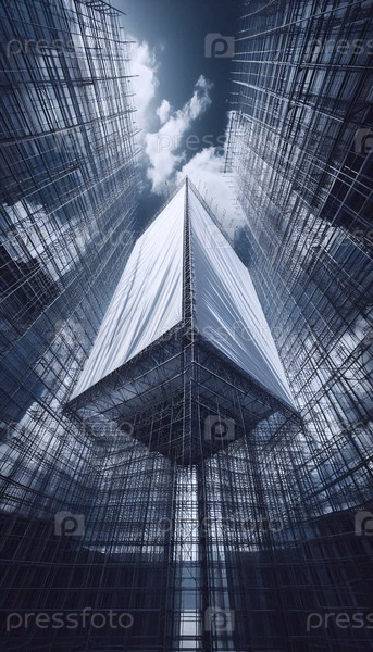 Макет большого тканевого баннера, растянутого по скелетам строящегося высотного здания в центре города, создал Ай
