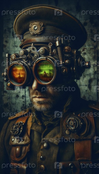 Солдат со стемпанковыми очками теплового зрения, Ai generated image