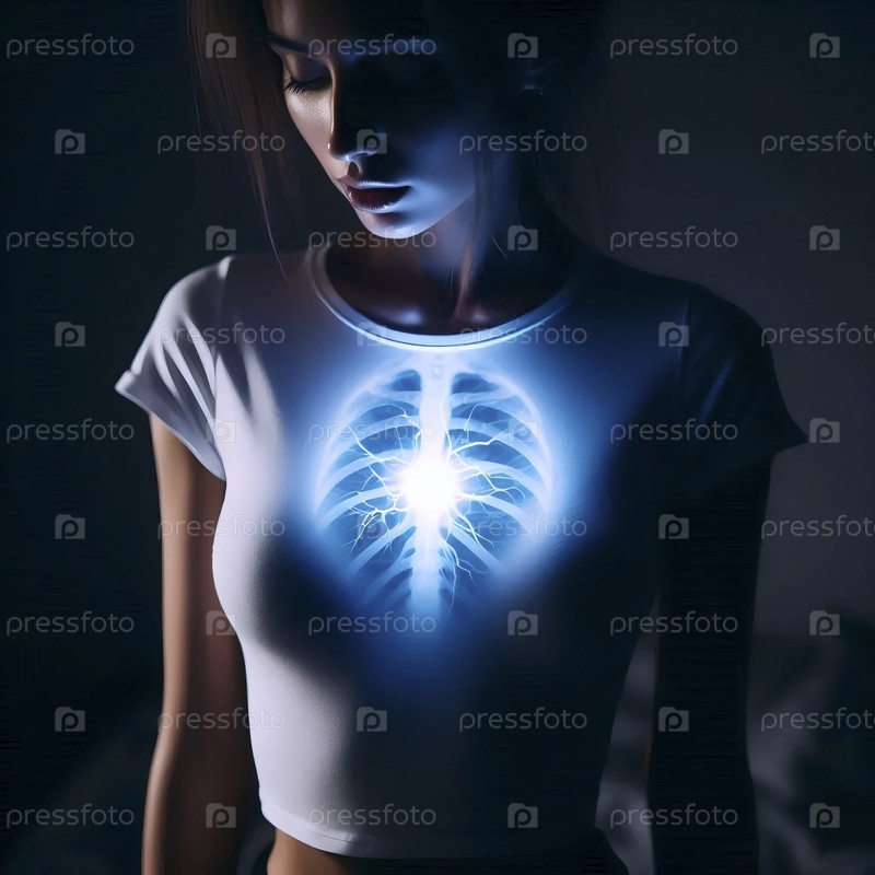 Женщина со светящимся реакторным сердцем, Ai generated image