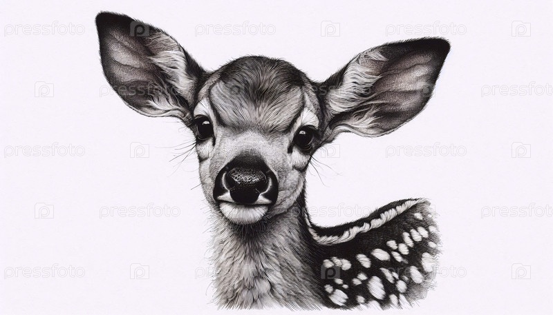 Curious Fawn ink A drawing art print, Ai generated image Любопытная дева чернила рисунок художественный печат, созданное изображение