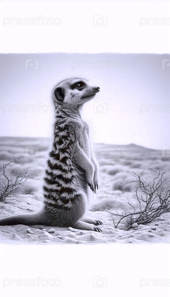 Щенок-сурикат стоящий охранник чернила рисование художественная печать, Ai generated image