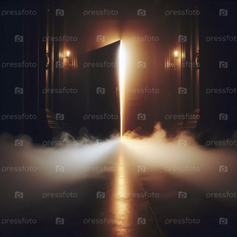 Сухой ледяной дым ползет под дверью раздевалки, Ai generated image