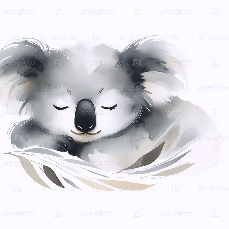 Коала акварельный художественный печат, Sweet Ai generated image A
