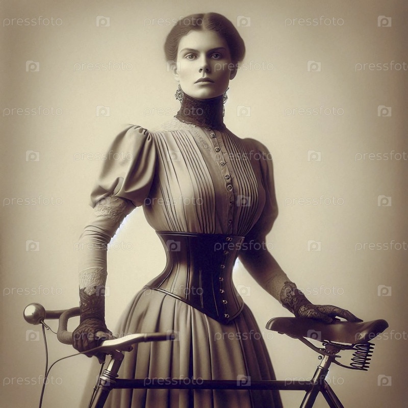 Суфражистка 1910-х годов на велосипеде, Ai generated image