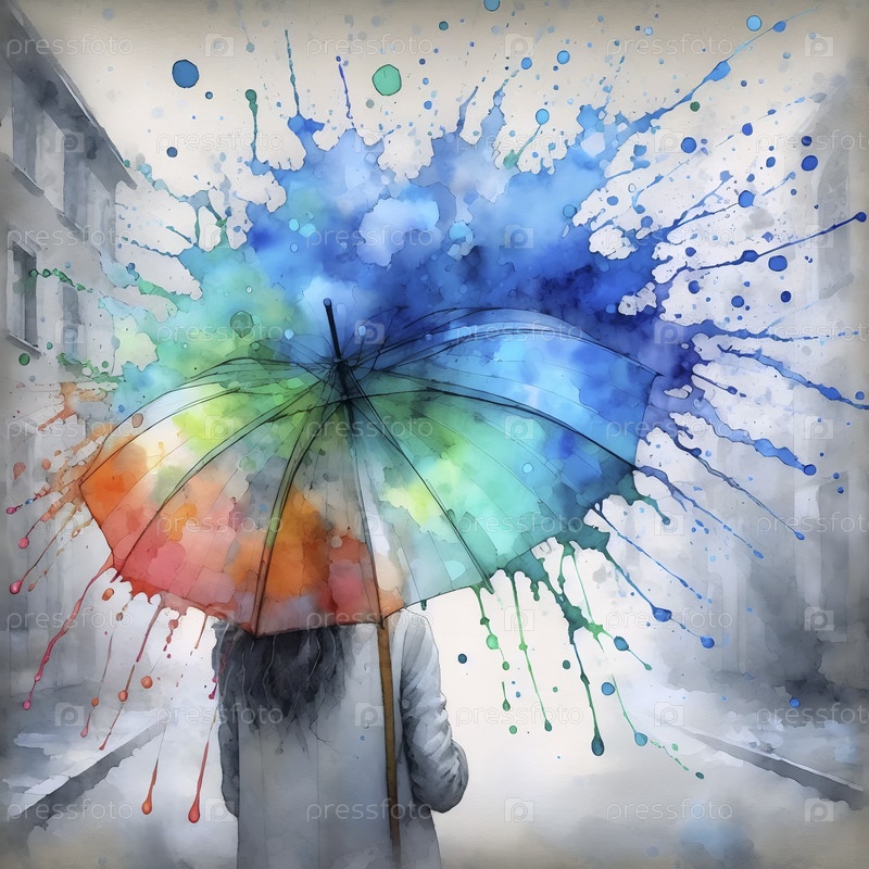 Зонтик под акварельным дождем, Ai generated image