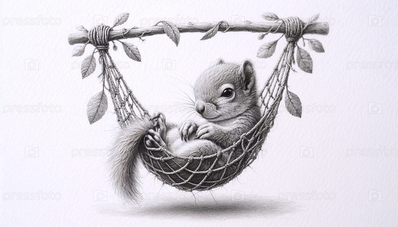 детская белка в гамаке чернила рисунок