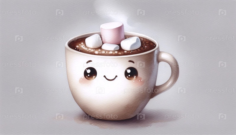 Уютная чашка какао акварель художественный печат, Ai A generated image
