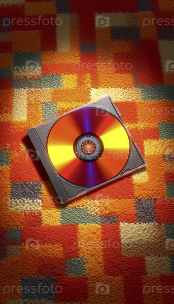 Ярко-оранжевый макет коробки для ювелирных изделий CD, пустой и слегка открытый на грязной текстуре пиксельного ковра
