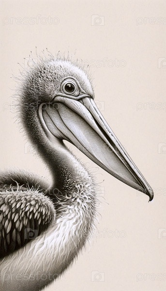 Небольшой пеликан с рыбой в клюве чернилами рисует художественный принт, Ai generated image
