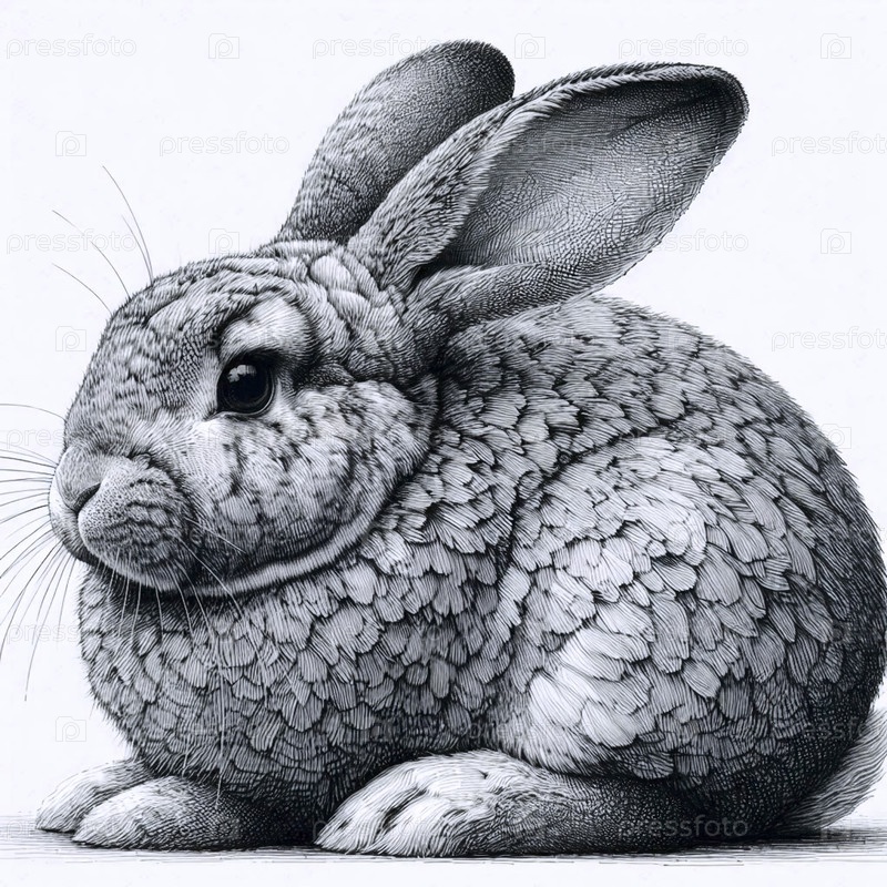 Bunny ink drawing art print, Ai generated image A Аи создал изображение с чернилами кроликов