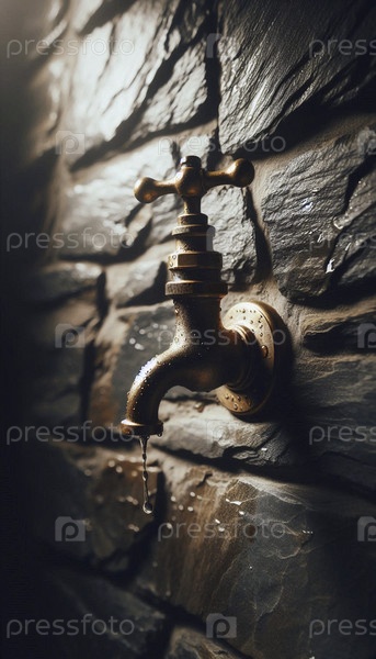 Мокет крана, установленный на стену из латуни на текстурированной сланцевой стене, Ai generated image