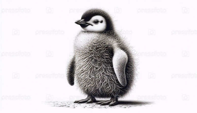 Пингвинский цыпленок чернила A drawing art print, Ai generated image