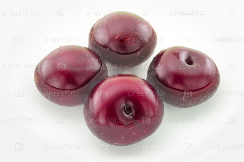 Сливы в воде на белом фоне