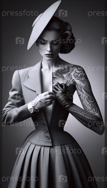 Силуэт A New Look с видимыми татуировками, Ai generated image