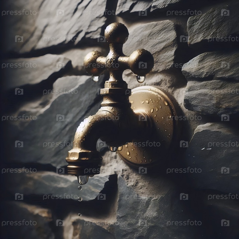 Мокет крана, установленный на стену из латуни на текстурированной сланцевой стене, Ai generated image