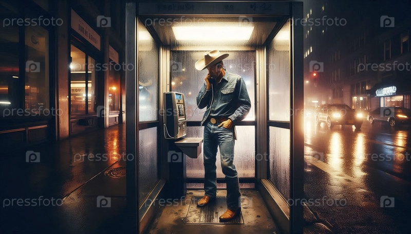 Ковбой в неоновой телефонной будке, Ai generated image