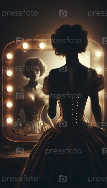 Силуэт в корсете против зажженного зеркала, Ай создал изображение