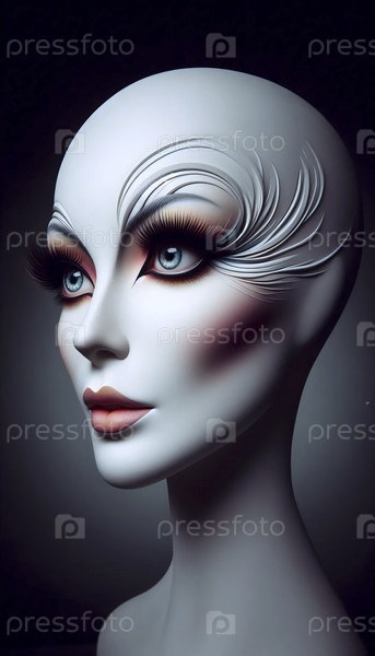 Макияж, нанесенный на голову гипсового парика, Ai generated image