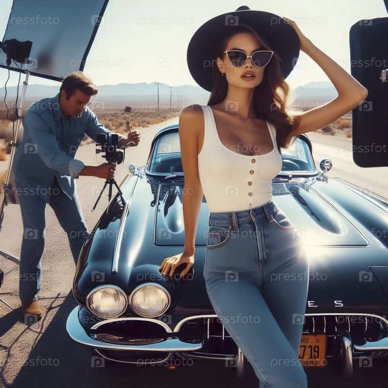Рекламная съемка джинсов на маршруте 66, Ai A generated image