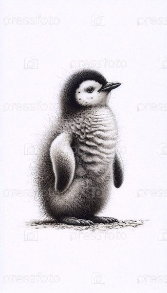 Пингвинский цыпленок чернила A drawing art print, Ai generated image