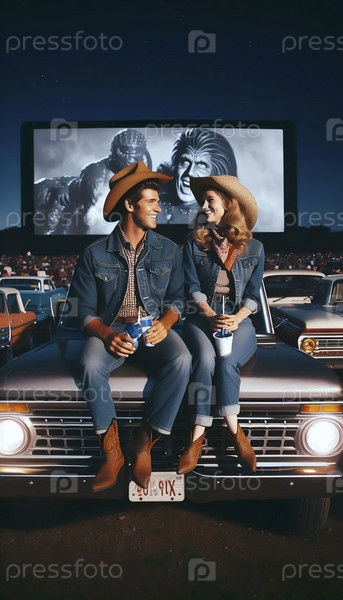 Портрет в двойных джинсах в кинотеатре, Ai generated image