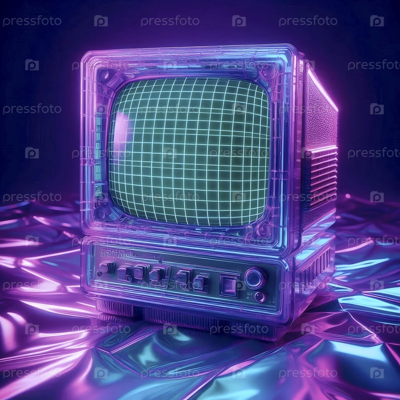 Транслюцентно-фиолетовый макет монитора CRT, отображающий сетку на серебряной голографической поверхности