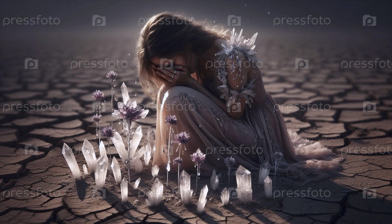 Женщина, в чьих слезах растут кристаллические цветы, Ai generated image